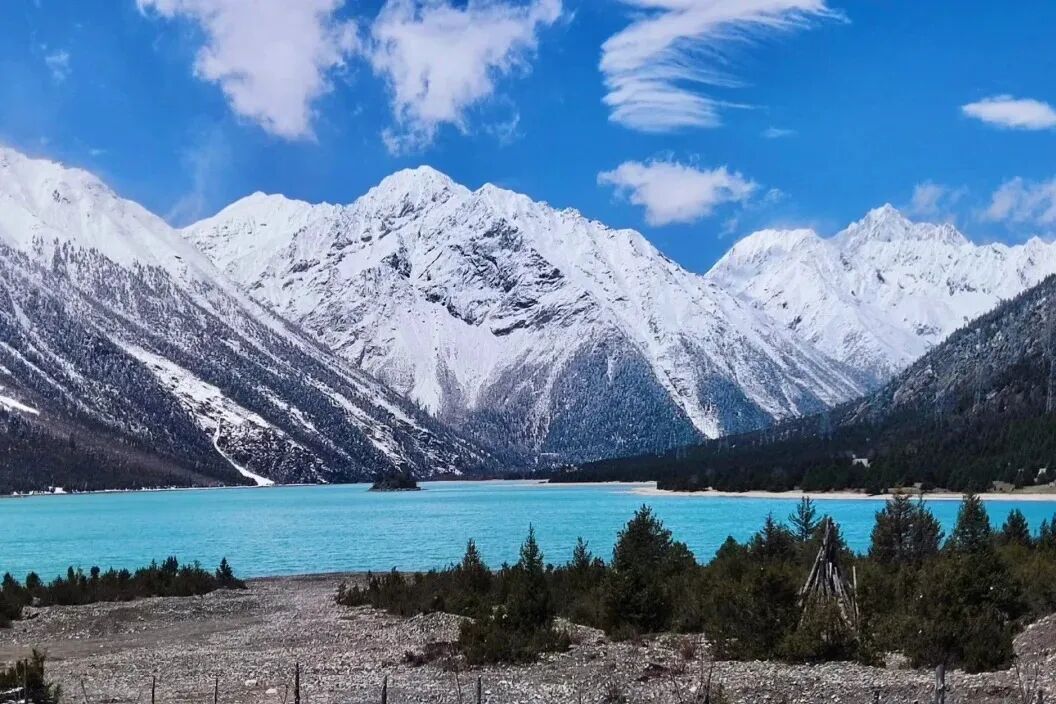 然乌湖位于西藏昌都八宿县境内,是因山体滑坡堵塞帕隆藏布江河道形成的堰塞湖,也是川藏线 G318 上的标志性美景。它的湖水源于来古冰川的融水,水质澄澈透亮,随季节变换着不同的色彩,冬日湖面还会凝结出梦幻的蓝冰,与远处的雪山相映成趣。