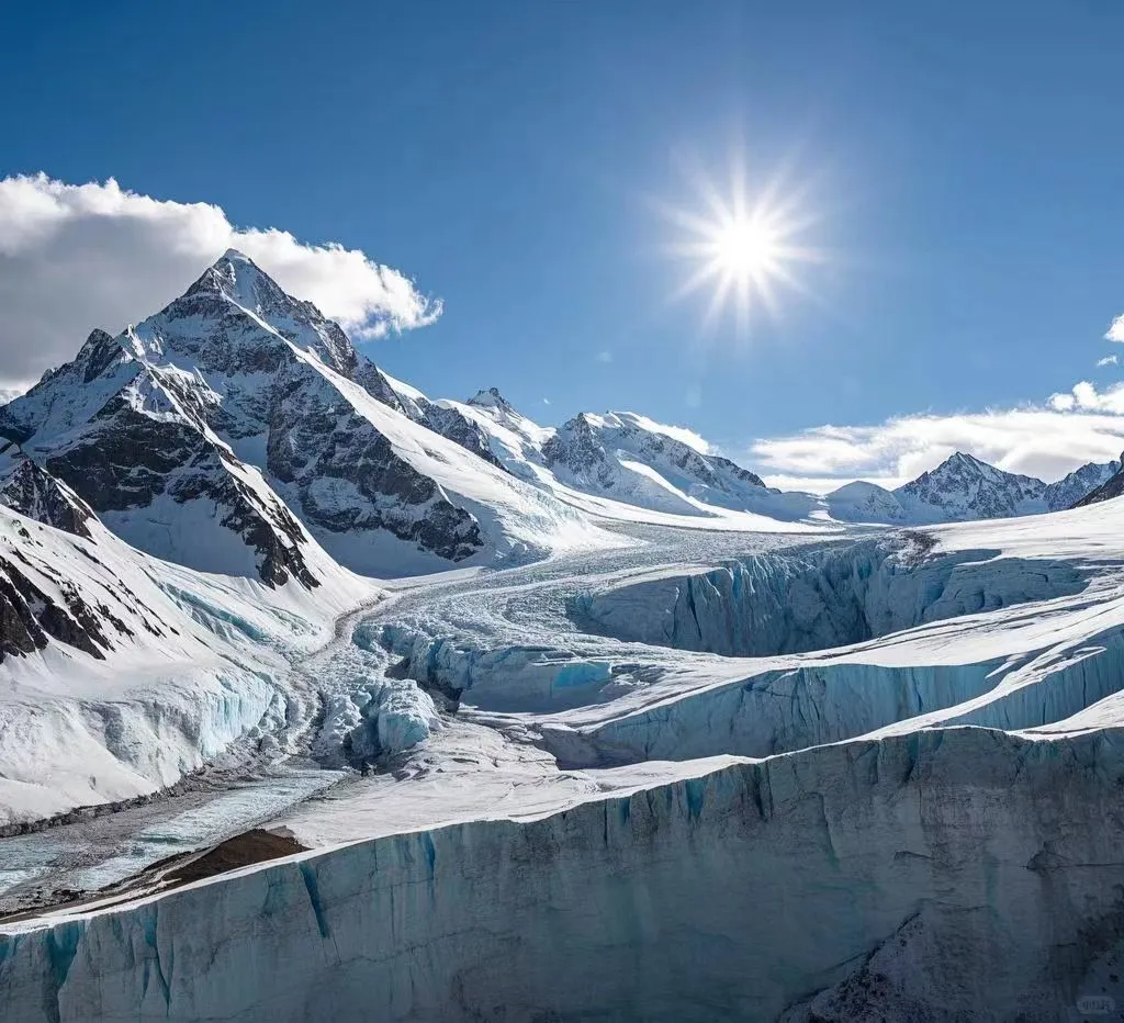 来古冰川:藏在然乌湖畔的亿年冰蓝秘境,被雪山簇拥,与然乌湖为邻,来古冰川是遗落人间的冰封王座。阳光穿透冰面,折射出澄澈的蓝,是时光沉淀的绝色。冰裂的纹路如大地的掌纹,诉说着亿万年的地质传奇;冰洞深邃幽蓝,踏入便如闯入异世界的梦境。在这里,脚下是冰川的低语,抬头是雪山的巍峨,随手一拍都是无需滤镜的大片。
