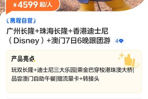 【门票】行程中所列景点/场馆首道大门票珠海长隆海洋王国门票、广州长隆动物世界/欢乐世界(二选一)、港珠澳大桥金巴、香港迪士尼乐园/香港海洋公园(二选一)