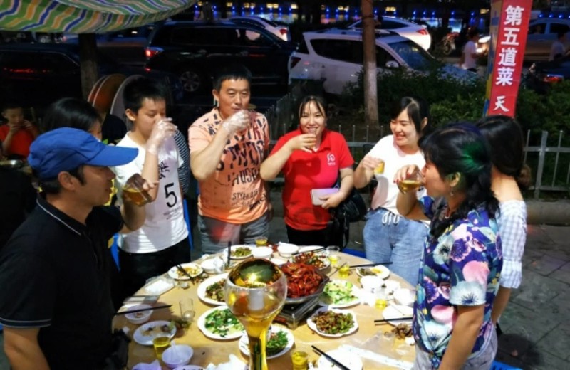 夜幕下的西门河畔,开心的我们。