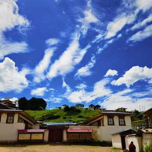 扎尕那,一路颠簸,走进世外桃源一一扎尕那,只见四周山石耸立,狼牙犬错,山坡上藏式房屋连成一片,山上林木与青草如同水洗一般,在阳光与云朵的协调下不时变幻着色彩,浓淡相宜,相映成趣,使人流连忘返,远处山坡如新生小狗皮肤般柔滑,让人忍不住想在上面打滚。