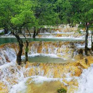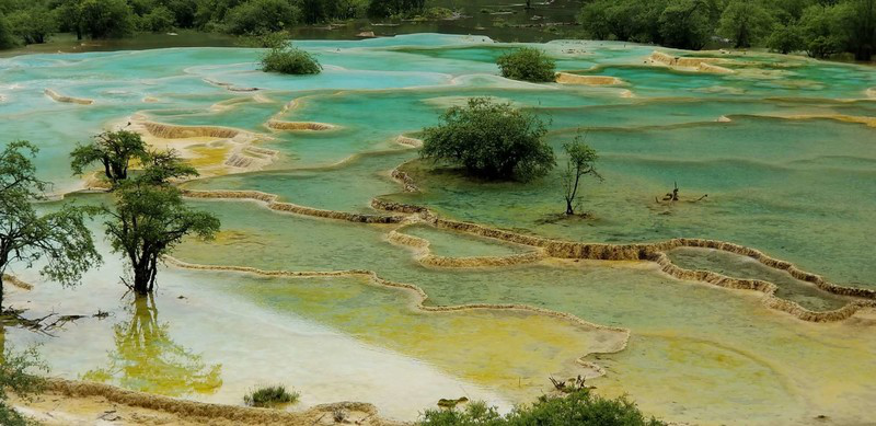 黄龙一一黄龙的彩池、峡谷、森林、卧波、瀑布、以及远处的岷山主峰的白雪,是以使每位游人的心在这空无飘渺间迷失,忘却了归途,远眺黄龙,犹如一条巨龙盘踞在山脉之间,大自然巧妙的将他们组合在一起,沉淀着黄龙之神韵。