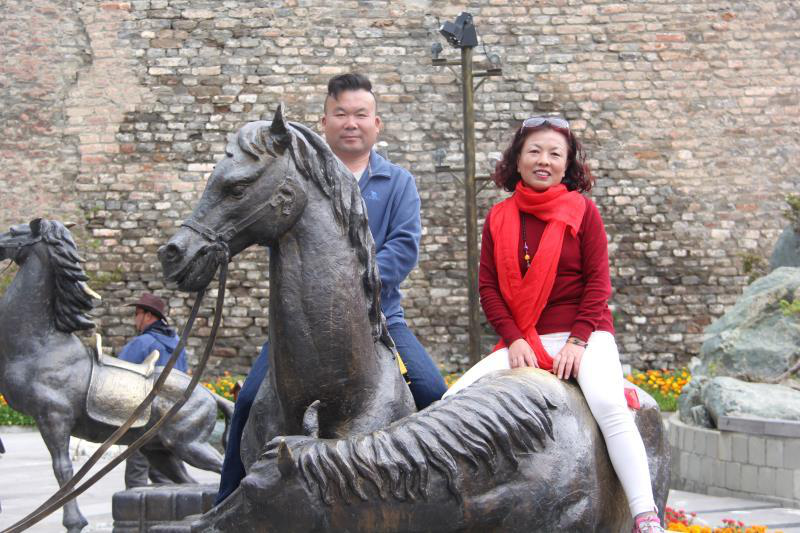松蕃古城,城不大,城墙高耸,大有一人当关万夫莫开的气势,据说这是松赞干布在此迎接文成公主,城门右侧有松赞干布和文成公主的雕像,城内人声噪杂,不宽的街道两边商店内商品琳琅满目,街道上操着汉藏口音的人来来往往,更显得各民族的团结与容合。