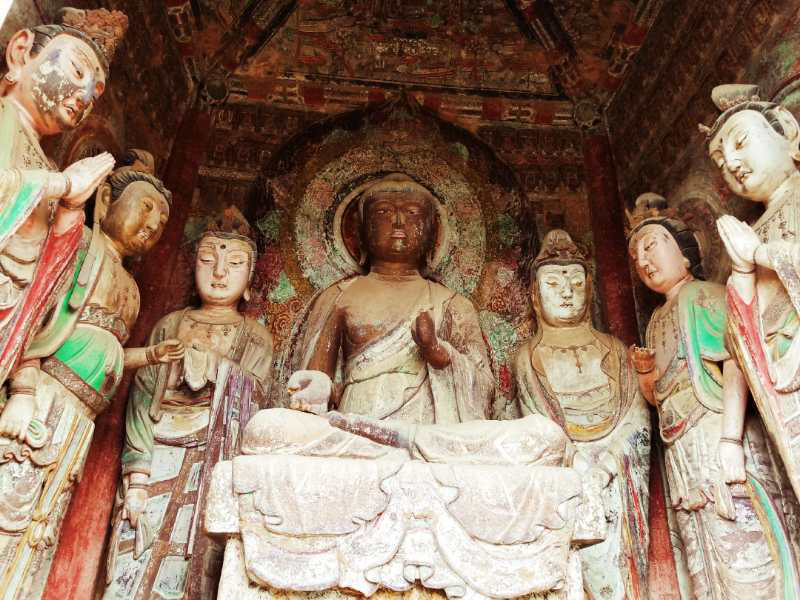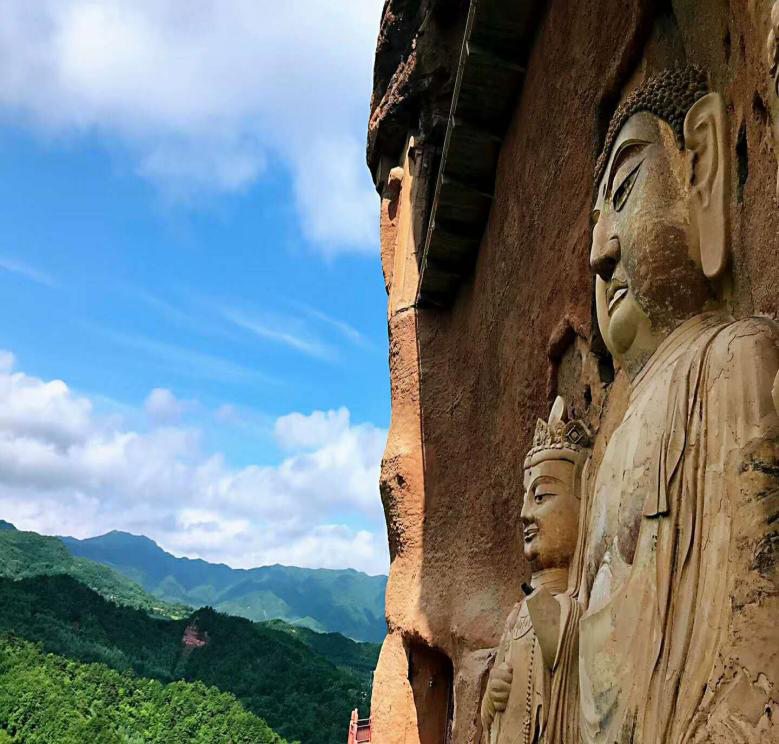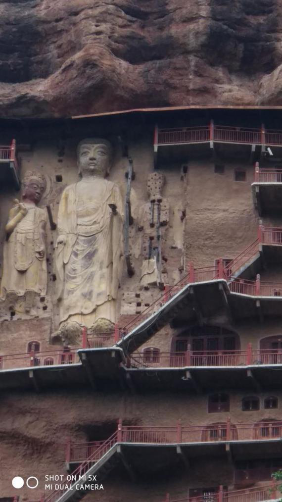 麦积山石窟,7点起床,洗漱完毕,在宾馆匆匆吃完早餐,开始这次旅行的最后一站一一天水麦积山石窟,麦积山位于甘肃省天水市麦积区,是小陇山的一座孤峰,高142米,因山形似麦垛而得名。麦积山石窟始建于384-417年。存221座洞窟、10632身泥塑石雕、1300余平方米壁画,被誉为东方雕塑艺术陈列馆,这里是众多虔诚的信徒,用数代人的智慧和无数工匠的毅力造就了这里。石窟历经千年风雨和磨难,依旧高耸挺拔,窟中佛像,惟妙惟肖,使人备感震憾。
