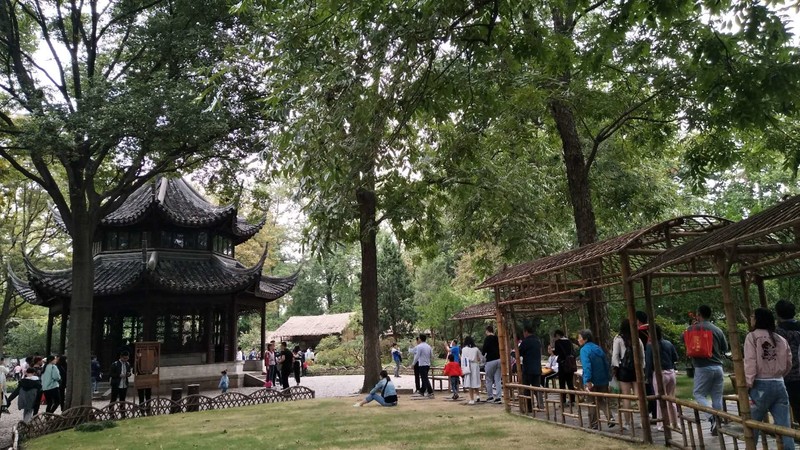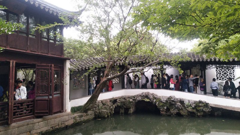因为提前做功课,我们把苏州自由行的详细功略早早发到群里,供大家自由选择。从玩到吃的,从购物或逛街无不详细。拙政园来苏州必游的地方。幸亏提醒大家提前一天网上购票,免去了排队买票的时间。8点多到达时,因为国庆节已是人潮拥挤,有图为证。