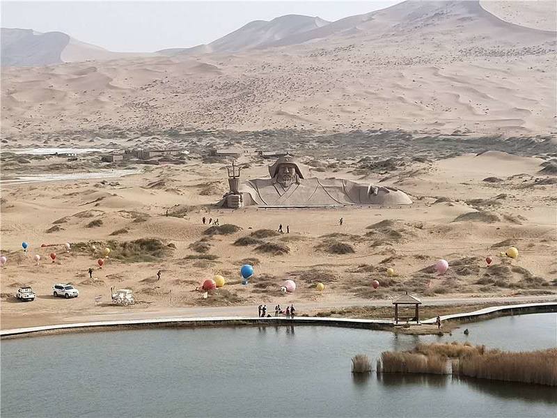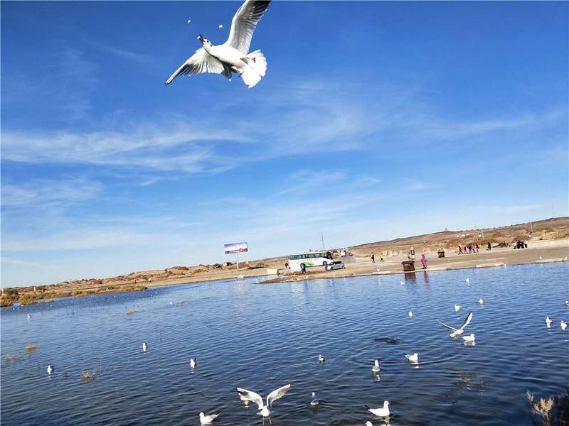 水漫栈桥大漠沙,爱心湖上开心啦。