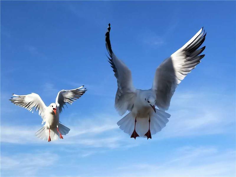 芦苇荡海鸥翱翔,张开大嘴吞骄阳。