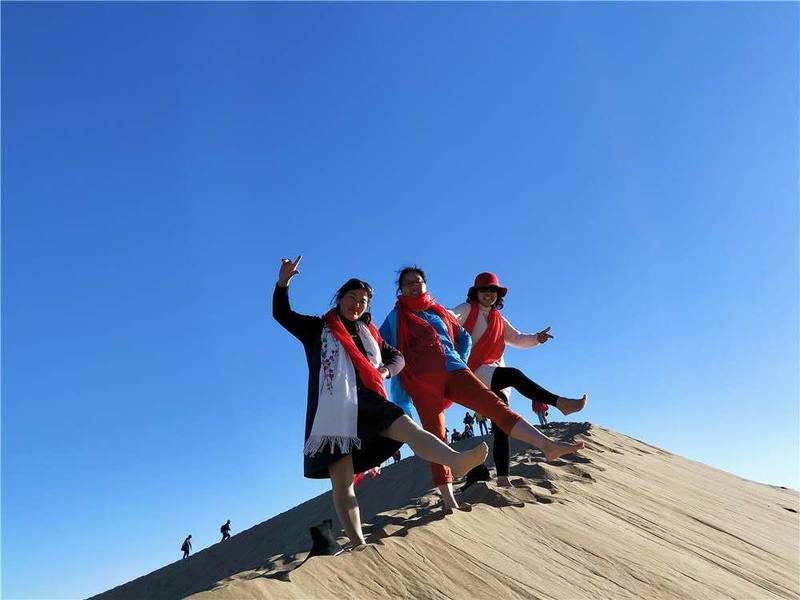 蓝色天空金黄沙,欢呼雀跃美美呀。