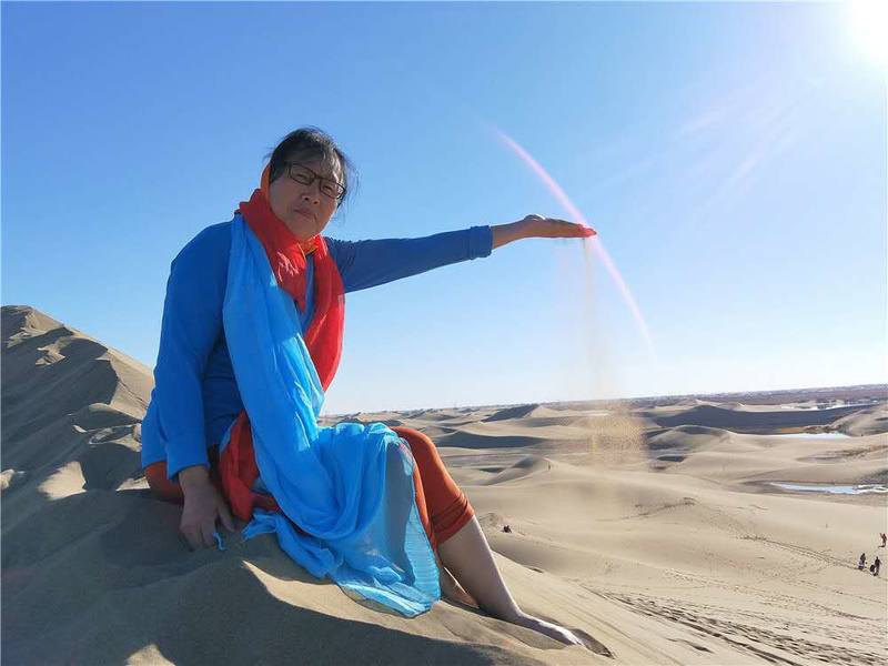 细沙飞舞纱罩面,蹦蹦跳跳俱开颜。