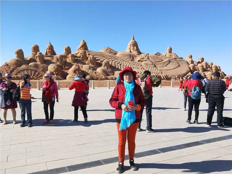 奇峰鸣沙不艰难,成吉思汗一边看。