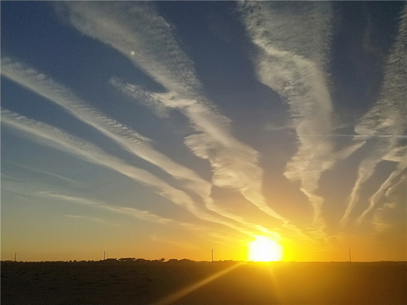 沙漠日落色橘黄,凄美晚霞明日阳。