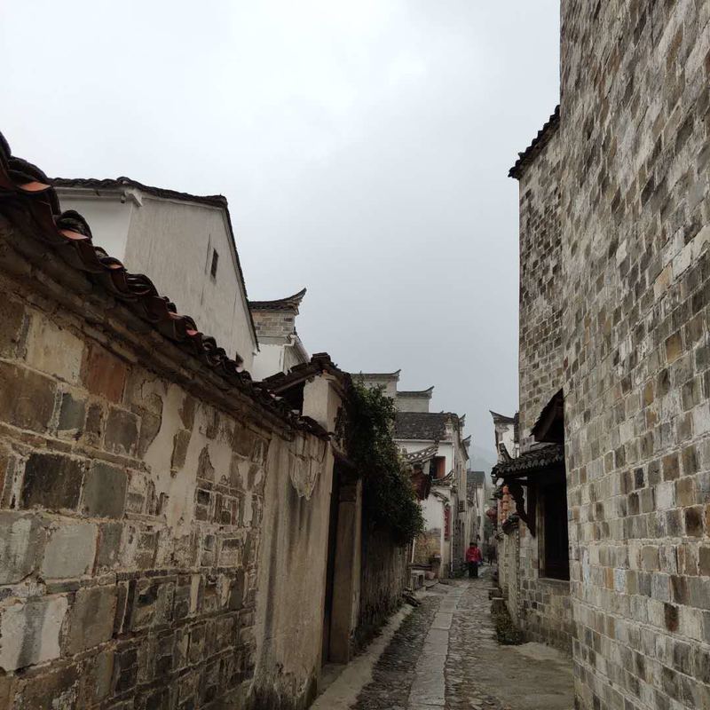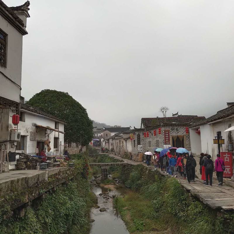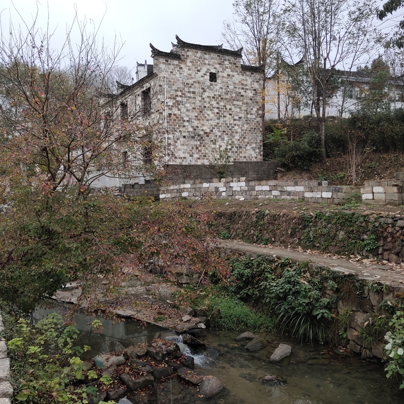 一路彩云相伴,我们到达了塔川。塔川村,又名塔上,隶属于黟县宏村镇。位于黟县桃花源著名旅游景点——宏村到木坑竹海景点途中,是黟县小桃源众多美丽富绕的自然村落中一个独具魅力的山间村落,有“溪绕前屋”等绝妙景观,尤其是塔川秋色,是众多画家、摄影家创作的基地。塔川秋色与四川九寨沟、新疆喀那斯和北京香山并列为中国最美的四大秋色,被誉为全国四大秋色之一。村口及周围地带多植乌桕树,且古树参天,每到秋季,满山树叶色彩斑斓,粉墙黛瓦掩映其中,美不胜收。这里已成为众多摄影爱好者的必游之地。未进村口,已经被这红叶白墙所吸引,立马驻足拍照。