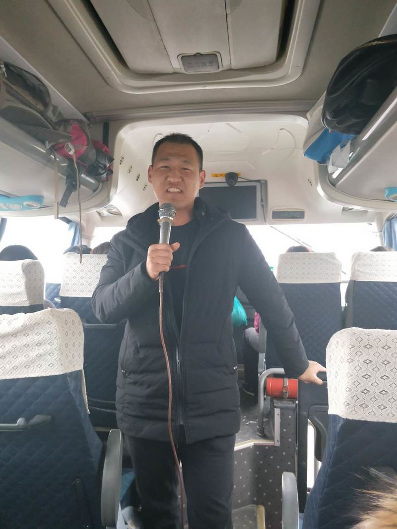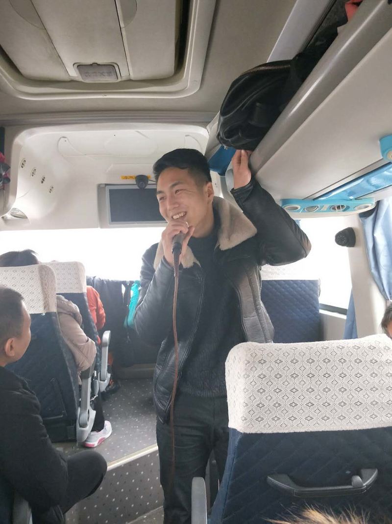 这次活动由于参加的网友较多,网站给我安排了三位新领队作为副手,分别是衫青、十一和文亮。衫青是个性格温和的美女,很会和网友互动,给大家唱了一首《幸福拍手歌》,带着网友又是拍手又是跺脚(可惜我当时刚好接了个电话没来得及拍照);十一很腼腆,他给大家介绍了自己名字的来历(他是十月一日来到南阳户外网的,以此留念);文亮,这个身高一米八二曾在春秋航空当过空少的大男孩则深情款款地为大家演唱了两首歌还有一位VIP网友也主动给大家讲了一则笑话,虽然今天雾霾很大高速公暂时封闭不得不走低速,但一车人都毫无怨言依然笑容满面让我心里顿感舒坦了好多好多。