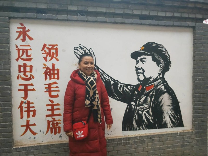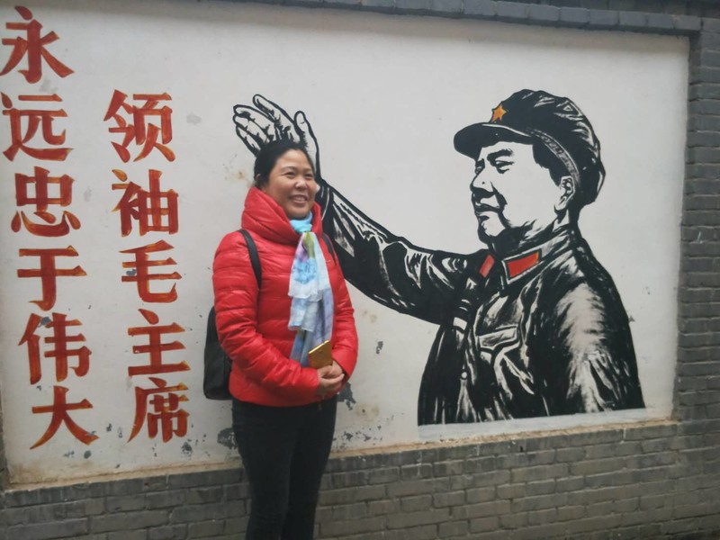 在车上我就给大家详细讲解了此次三门峡之行的独特之处,这里的景点是很多地方都无法媲美的特色,这里的地坑院别处很少见,这里的天鹅别处更是少有。我们的第一站是陕州地坑院,这种神秘、奇特的民居,在中国乃至世界都是独一无二的。22座地坑院相互打通,每一座都有不同的主题,全方位地向世人展示地坑院的历史演变以及陕州人们的生活风貌与民俗技艺。网友们兴奋地从一个院子穿梭到又一个院子,充满好奇地四处拍照,在这幅画像前,美美的网友们排着队挨个留影,戏称自己受到了伟大领袖的“亲切接见”……