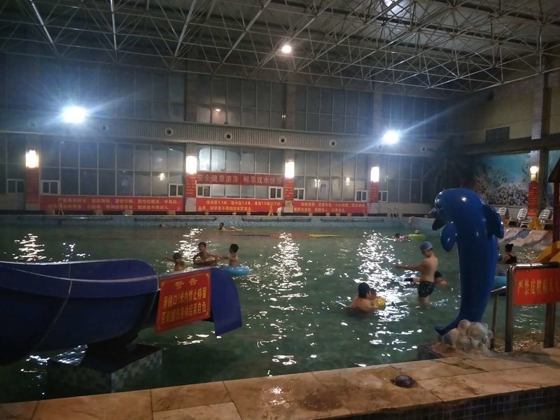 晚上入住陕县宾馆,网站为大家安排了泡温泉,就在酒店后院的“浅水湾”……听着名字就很美是吧?要知道陕县的温泉可不是一般的温泉哦!这里的温泉能泡能饮,矿泉水源自侏罗纪岩层,完全符合国际和国内规定的饮用水水质标准,优于我国的崂山和法国的维希矿泉水,水中含有大量偏硅酸、锶、钾、铁等34多种有益于人体健康的微量元素,是全国少有的优质矿泉水。常饮用此水,对胃病、心血管病、糖尿病等有明显的理疗保健作用,同时可增强人体免疫功能,有延年益寿之功效呢!