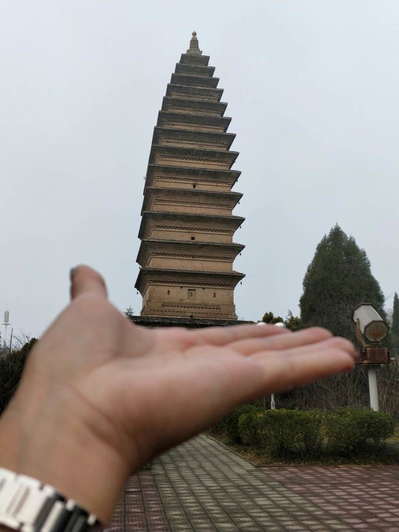 第二天一早,吃过早餐,我们来到传说中的三门峡“蛤蟆塔”。蛤蟆塔呈四方锥形,共分13层,高约26.5米。塔心结构奇巧,设有梯道可通塔顶;每层四角,装有铎铃,轻风吹过,叮咚作响,犹如美妙的音乐。令人称奇的是,在塔的周围十几米处,或拍手或击石,宝塔随即就会发出“咯哇咯哇”如同蛤蟆的叫声,蛤蟆塔也就因此而得名。在当地,提起蛤蟆塔,男女老幼没有不知道的,可是提起它的大名,知道的人并不多,但是我们今天来的的网友可全都知道~~~别说是我告诉你们的哦!