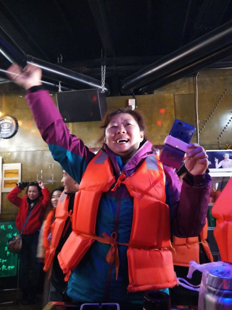 坐游轮游黄河啦!“天鹅号”是由三门峡北方游船有限公司投入巨资全面定制的一艘黄河上的豪华游轮。船身总长50.48米,宽13米,造价两千余万元,融旅游、酒吧、KTV、餐饮、客房、休闲吧、多功能会议室为一体。是目前我省黄河上最大的豪华游船,也是黄河流域最大、功能最齐全的游轮。穿上救生衣来到甲板上,这里早已挤满了开心狂舞的游客们,大家在“38度6”的火热音乐声中尽情欢舞。船行20分钟后,二楼的酒吧里演艺开始了,有演唱、柔术、变脸、气球表演等,非常精彩……看最后一张照片,我抓拍的,这位姐姐陶醉其中,玩嗨了!