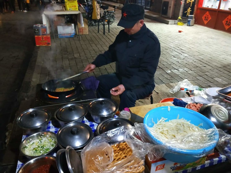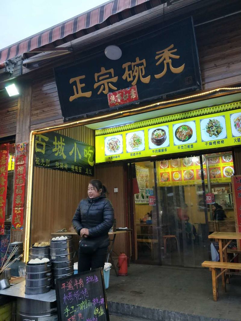 这位老人在喧闹的古城街头当街执勺,旁边围着好多人在等,他做的什么好吃的?没错,这就是“碗秃”,也叫“碗托”,是一道有名的也绝对值得品尝的山西风味小吃。由于平遥是一座具有2700多年历史的文化名城,是中国目前保存最为完整的四座古城之一,也是目前我国唯一以整座古城申报世界文化遗产获得成功的古县城,所以,平遥的碗秃也被游人们所尽知。