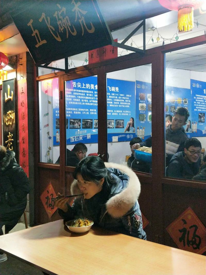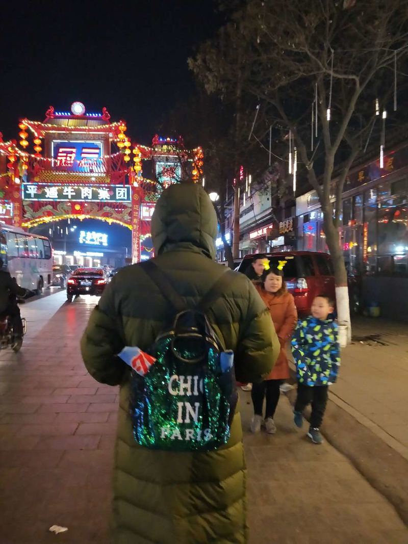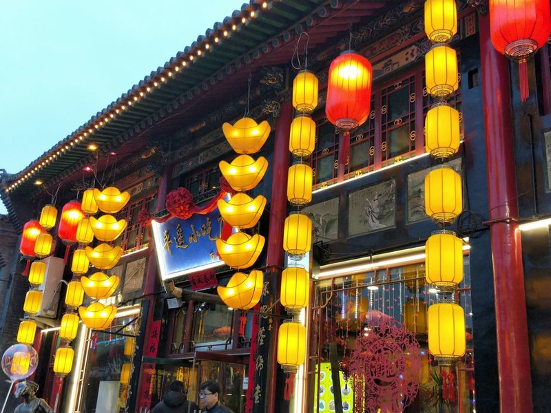 如果说古城的夜景是一幅彩色照片,那么古城的白天则显得较为灰白。恰逢春节,家家户户张贴的大红灯笼和春联为古城增色不少。古城的景点分布比较集中,以四大街为主的精华线路是首选。由于我们入住的宾馆在北大门附近,我们就以北大门为起点,穿过北大街、进入西大街,先去参观最不能错过的中国第一家银行“日昇昌票号”,然后一路分别是协同庆票号博物馆、城隍庙、文庙、县街以及浓郁的晋商文化气息的明清一条街……品尝过山西特色小吃“栲栳栳”,悠闲自在地行走在古城中,感觉就像是走进了古老的故事当中……