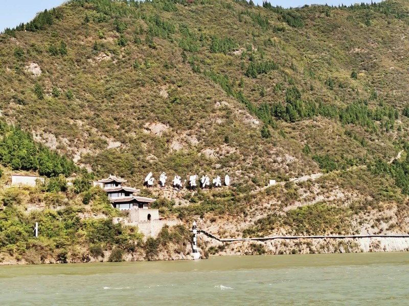 换乘小船,画舫那种,开始深入瞿塘峡内,我们企图找一个岸边停靠,来满足徒步的欲望。 夔门城楼离我越来越远,心中涌起一丝激动。