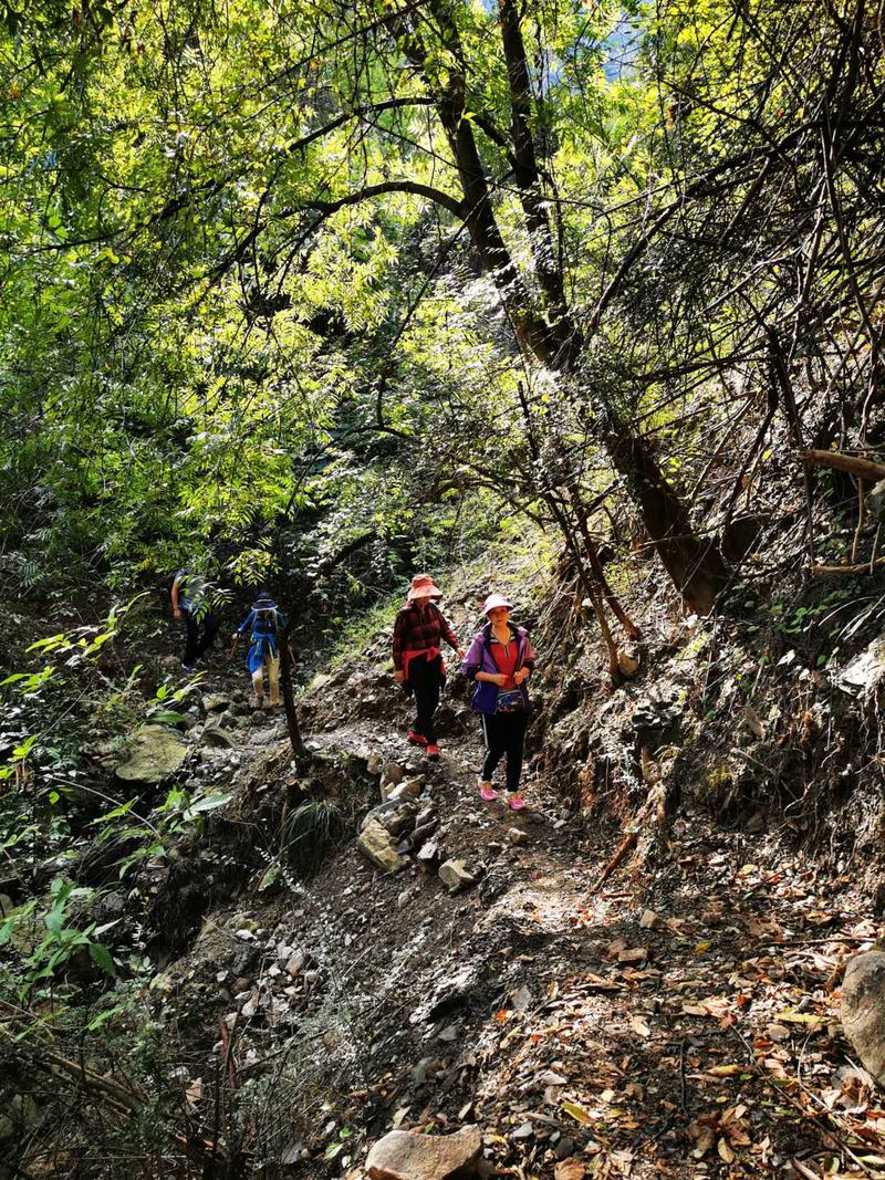 随同前来的各地户外俱乐部的负责人,创始人,一群人边交流,边体验这条徒步道。 这些户外俱乐部创始人都有独立研发自己户外线路的能力,并都有一个通病:被抄袭,因此我们永远有着共同的话题。 路边不知名的野花随时闯入眼帘,红叶预计十一月会变红,长江三峡的红叶很出名,从十一月一直能红到十二月底,脚下的落叶沙沙作响,寂静的山谷中仿佛就剩下了自己,户外运动真的可以沉寂自己,在汗水中体会成功的不易,在孤独中获得发现之美,用脚步感受祖国大好河山,在恶劣的环境中历练自己,这就是户外的精华所在。