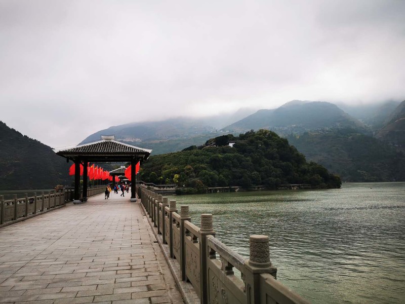 第四天,徒步瞿塘峡之——赤甲山 昨天徒步的夔门白盐山,今天要走一走白盐山对面的赤甲山,三峡之巅。 首先热身,去看看白帝城,这里有唯一没有被淹没的白帝庙。 刘备也曾停留于此,留下很多故事。 通往白帝城的路由一条长廊连接,由于长江水的倒灌,白帝城成为一座孤岛。