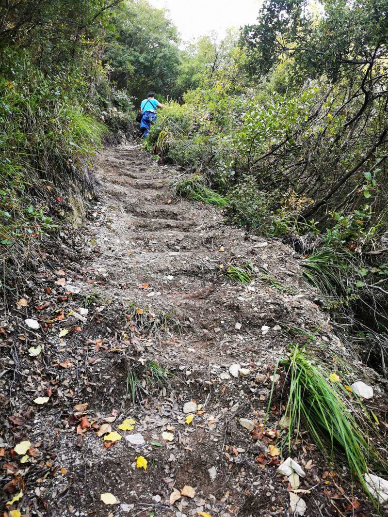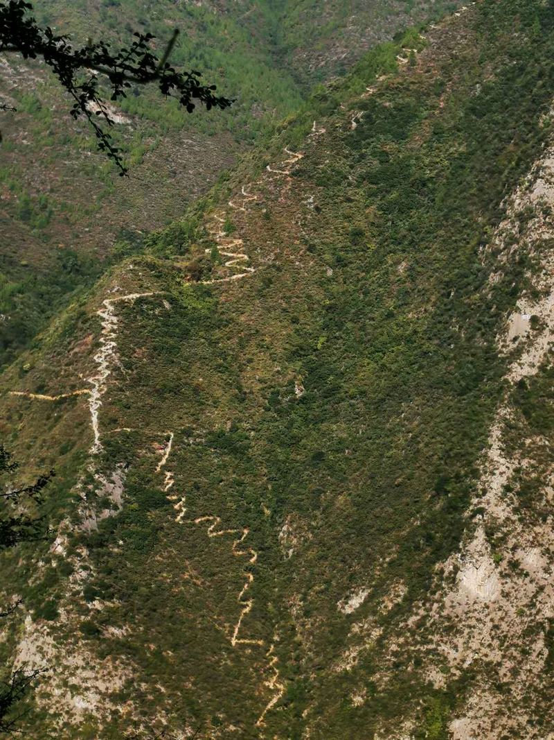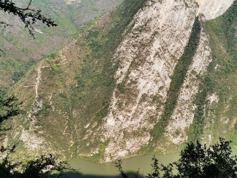 言归正传,我们是来徒步的。 白帝城看完,沿着江边栈道,蜿蜒曲折,像肠子一样,一路拔高1200米,长达公里的肠子路开始了,上去就是长江之巅,昨天我比对面白盐山看到的清晰的小路,强度很大。 鉴于这种强度,我们决定在户外网今后的徒步三峡5天活动中,赤甲山不再登顶三峡之巅,只走到人民币观景台,就去脐橙园,这样平缓一些,强度也不大,风景却是一样的。