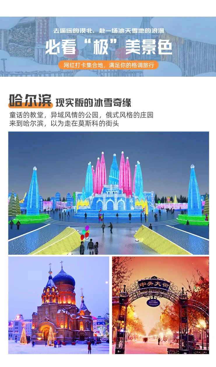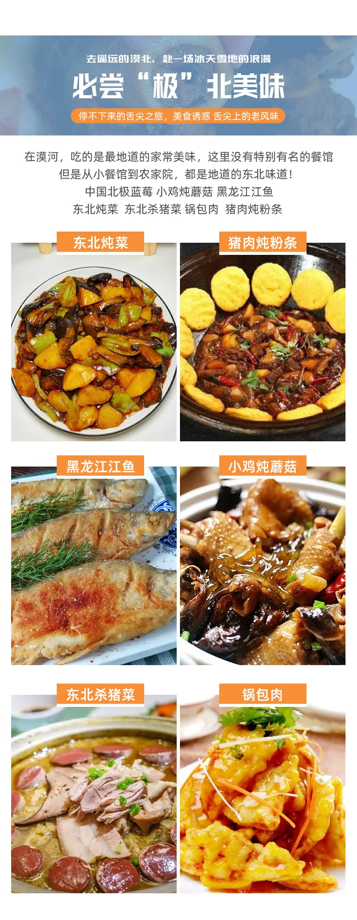 3、全程包含5早餐:哈尔滨2个早餐、雪乡早餐、北红村早餐、北极村早餐,(有两个早餐火车上自理)