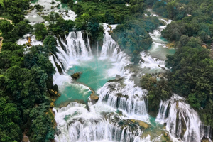 德天跨国大瀑布:(游览时间约2小时,景区接驳车35元/人已包含),徒步进入景区游览亚洲第一大、世界第四大跨国瀑布,瀑布由中国的德天瀑布和越南板约瀑布相连构成,横跨中越两国边境,宽208米,落差70米,纵深60米,三级跌落,雄奇壮阔!