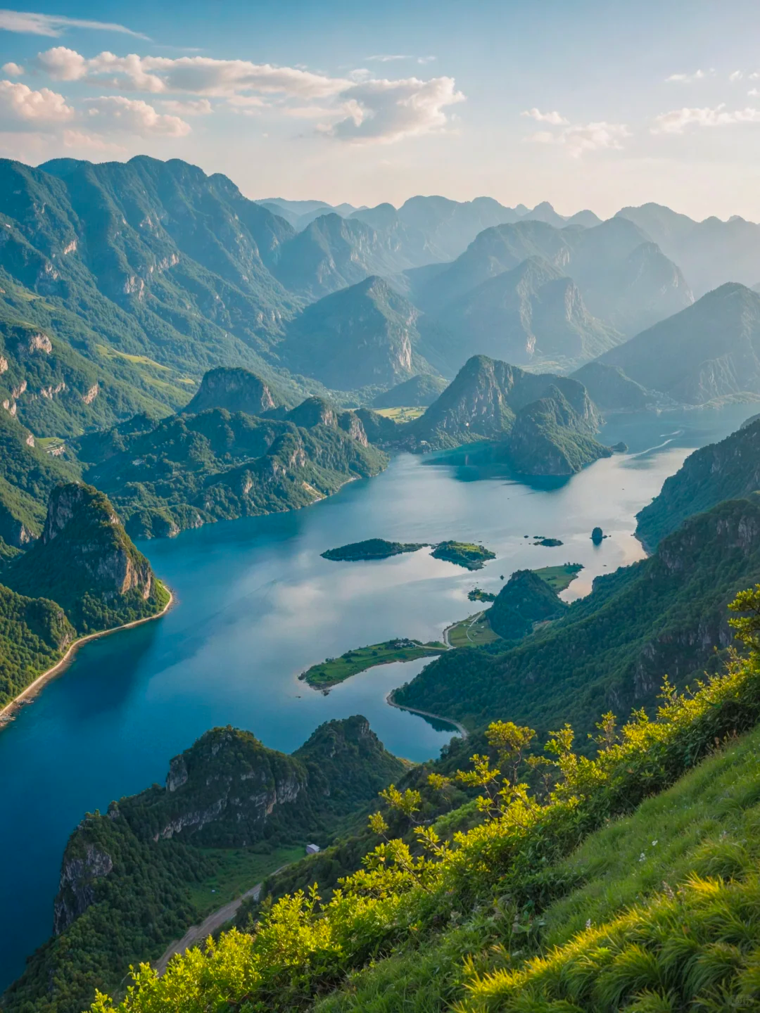 浩坤湖:浩坤湖广西壮族自治区旅游景点,位于百色至凌云的公路边,为澄碧河水系堵洞成湖,距离神云龙宫五公里,湖宽500-1000米,是一个以自然风光和生态旅游为主题的湖泊景区。浩坤湖四周群山环绕,湖水清澈见底,宛如一颗镶嵌在大地上的明珠。这里的宁静和纯粹吸引着众多游客前来放松身心,远离城市的喧嚣。