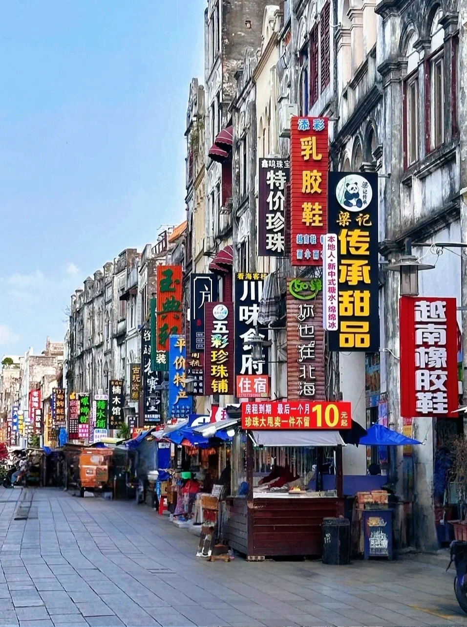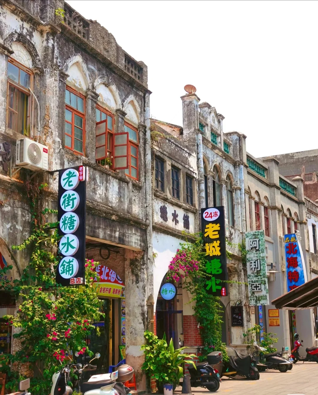 百年老街:位于中山路和珠海路(始建于清代,迄今已有一百五十多年历史,是中国岭南直线最长、保存最的完好的骑楼老街之一,具有明显的中西结合的古罗马建筑风格)