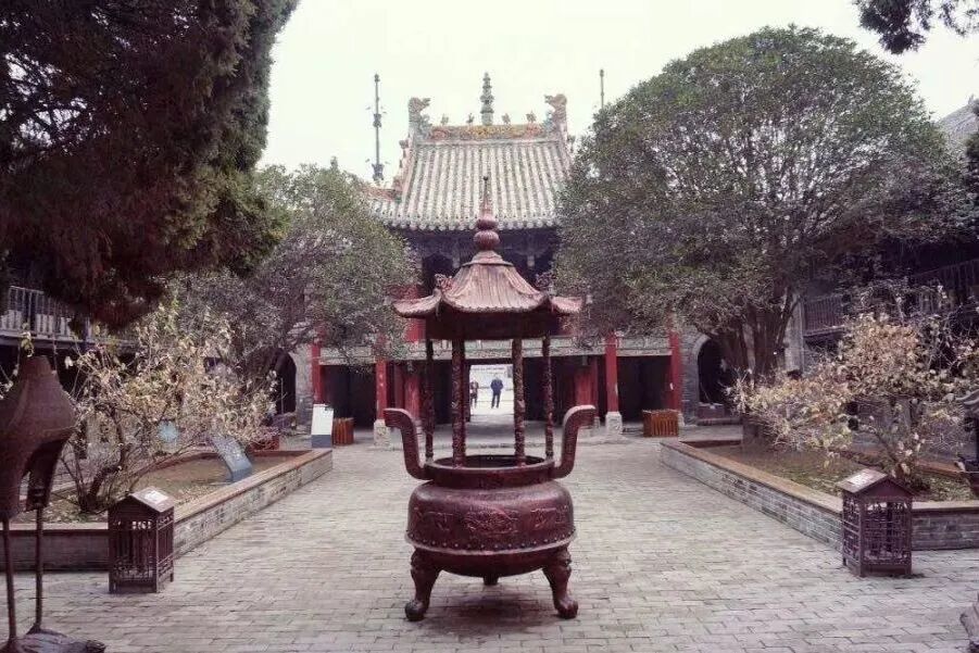 花戏楼,原名大关帝庙,亦称山陕会馆,由大关帝庙、张飞庙、岳飞庙、朱公书院等建筑组成。由于戏楼的砖雕、木雕、彩绘多以地方戏曲折子戏为主要内容,所以俗称花戏楼,以铁旗杆、山门砖雕、戏楼木雕“三绝”闻名。