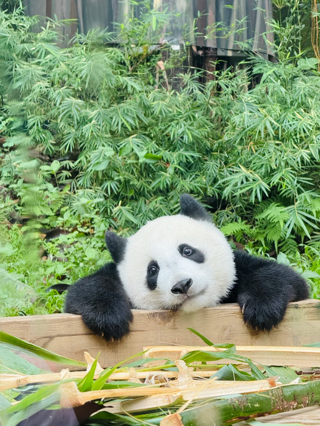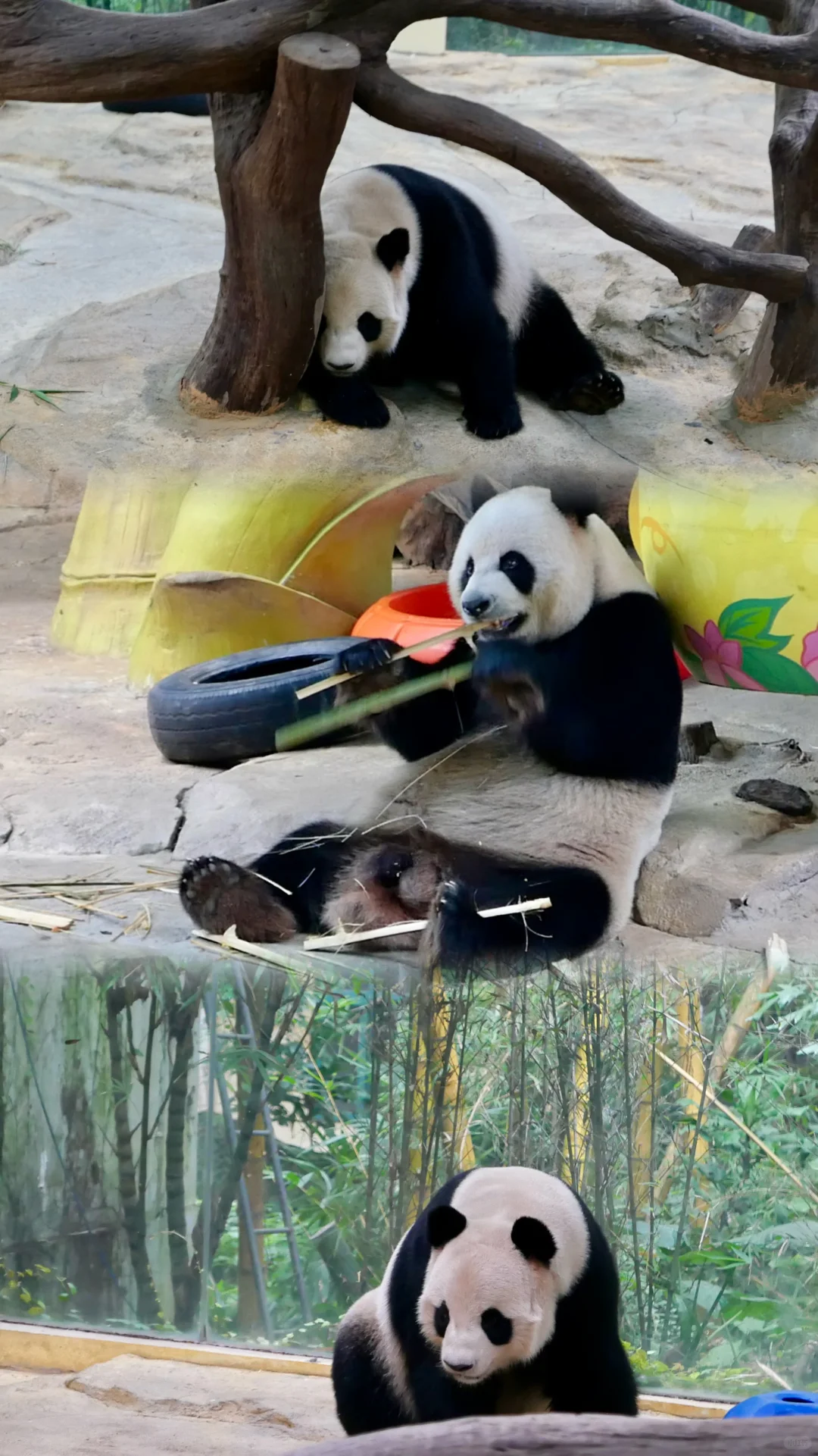 看熊猫三胞胎啃竹笋,