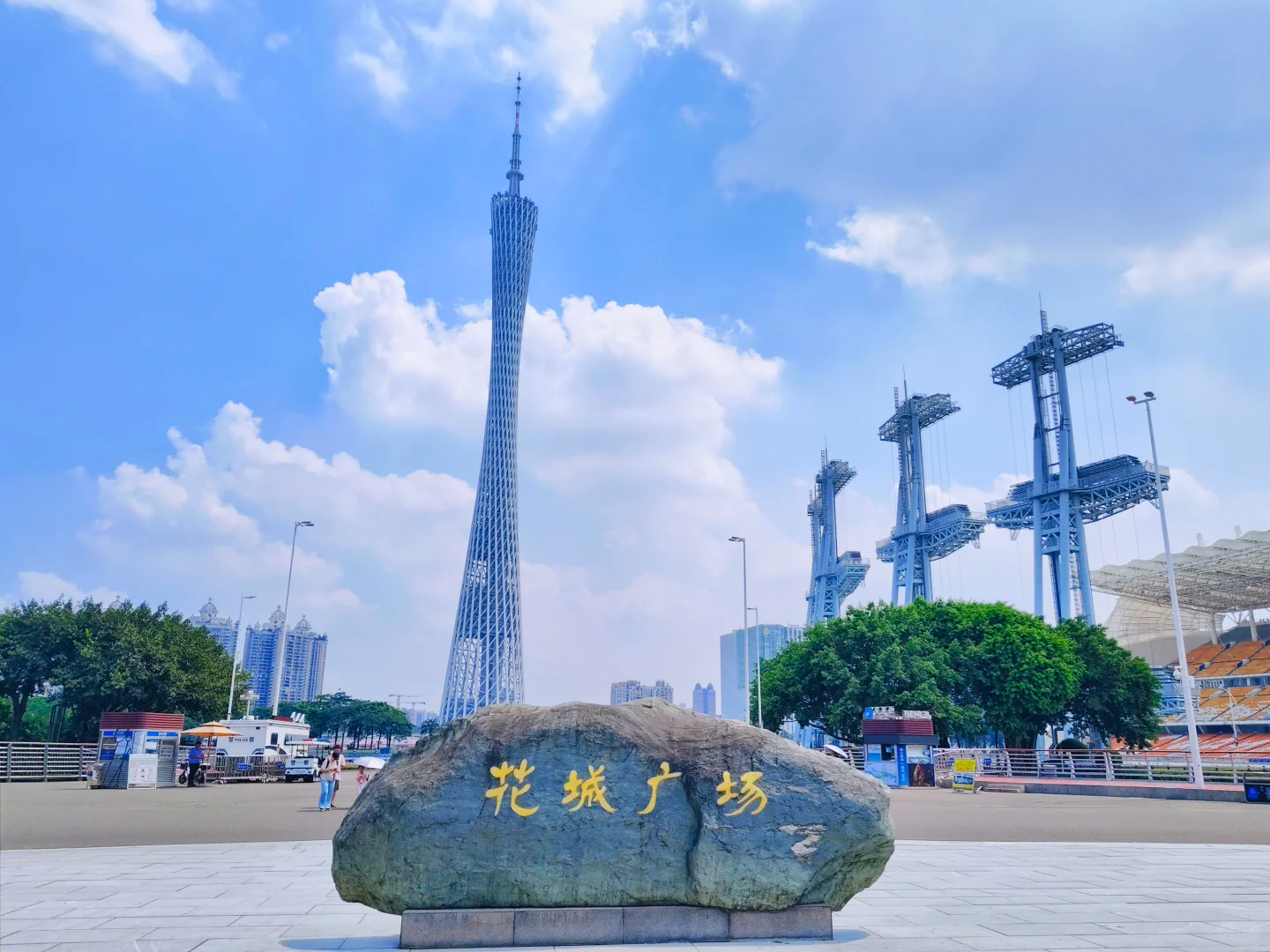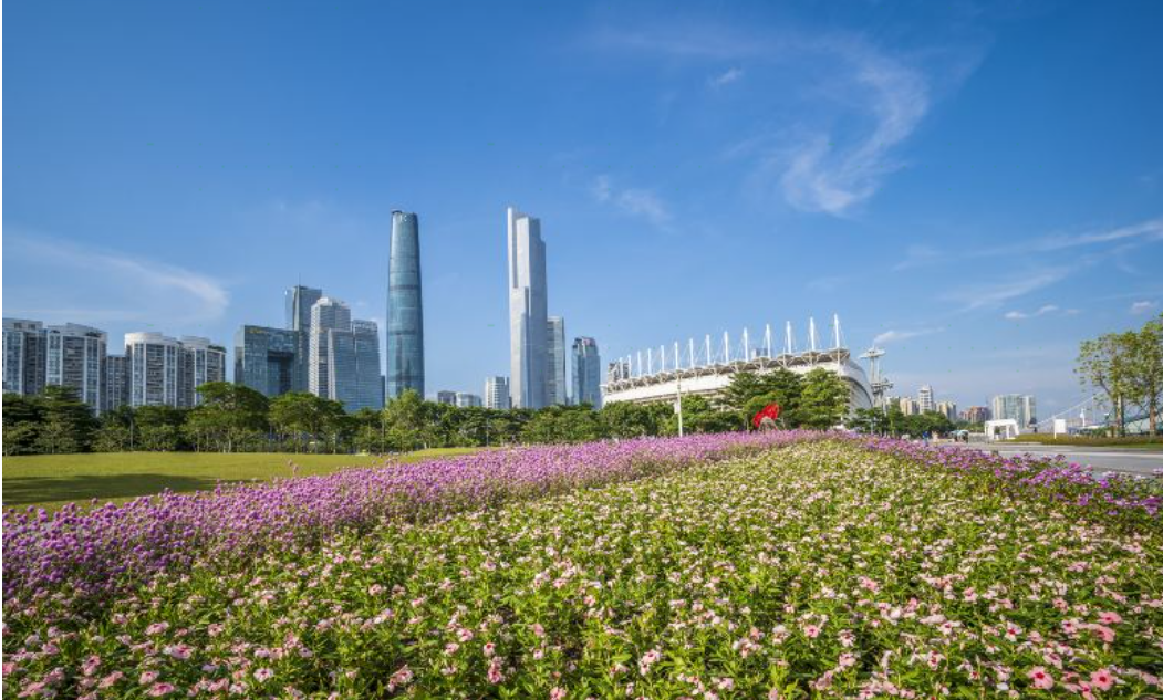 广州城市的新中轴线广场,少年宫、大剧院、图书馆、博物馆都在花城广场周围。花城广场建有人造的景观湖、大型的喷泉和灯光广场,绿树环绕,还有5个花岛,一年四季都有花开,还会举办花市、灯光节等活动。
