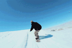 2、 若想向左转弯,就把身体重心倾向右脚,保持雪板平行于雪面;