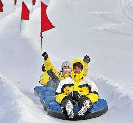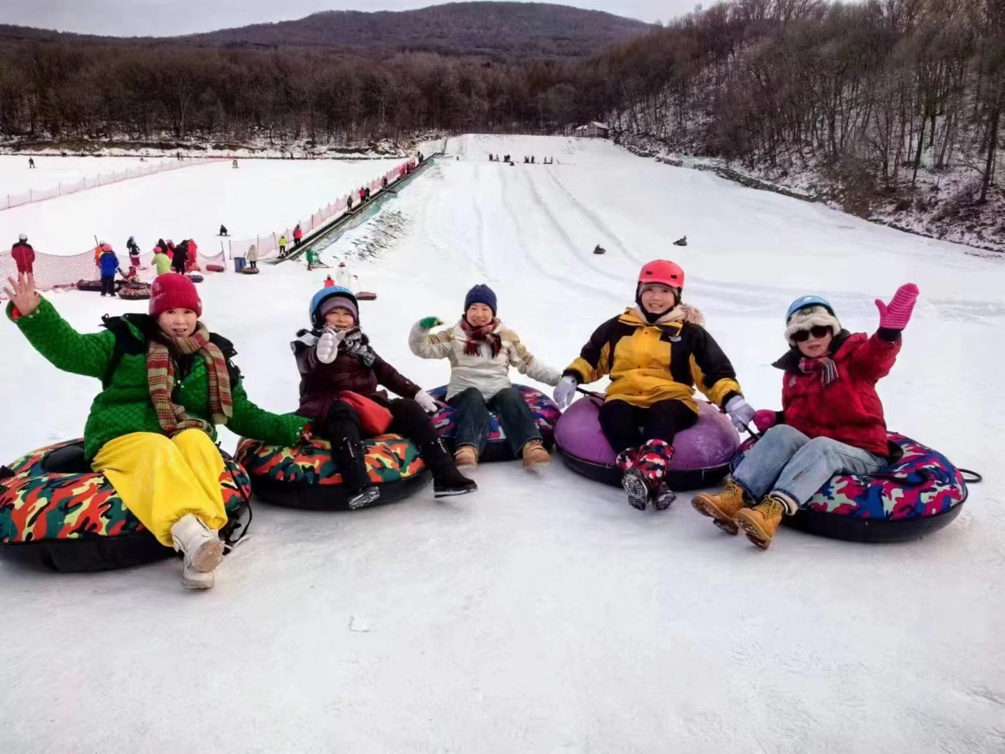 跟小妹一样怕摔的小伙伴可以尝试雪上飞碟,一样的速度与激情,却比滑雪好上手得多~