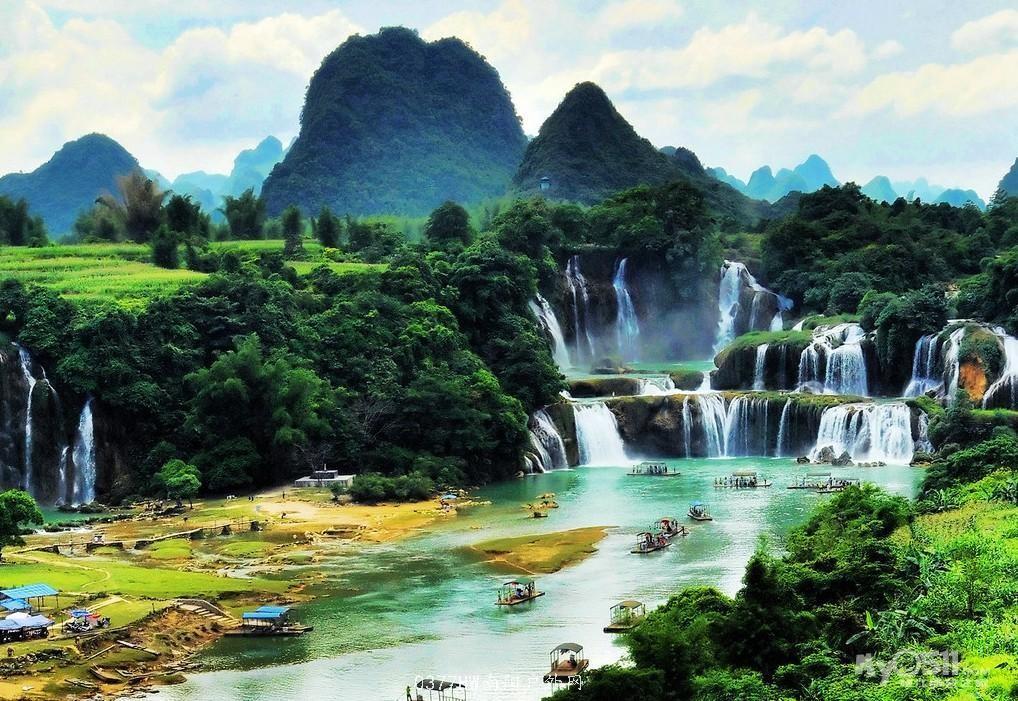 到德天瀑布的跨国水势;