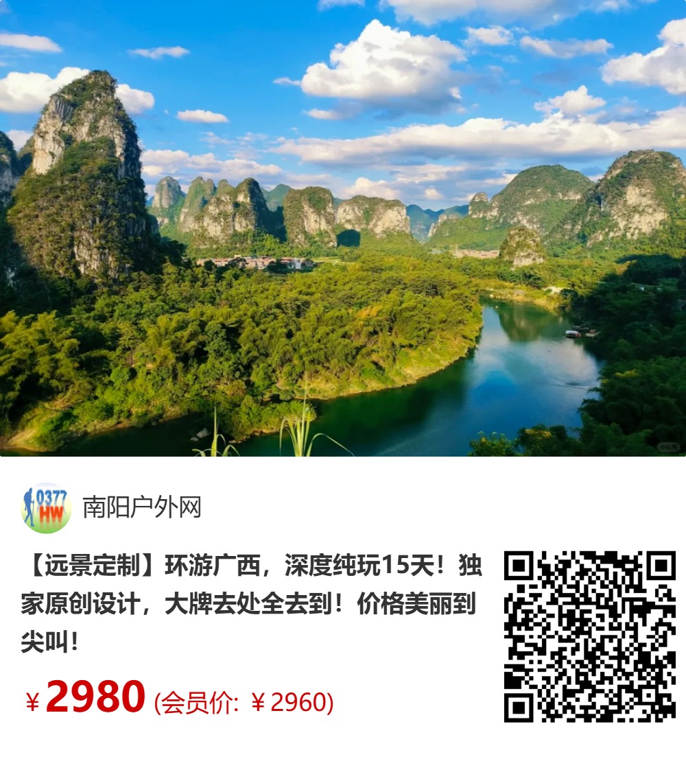 【如何到达】活动第一天,全天为桂林集合时间,第一天抵达桂林后到酒店报南阳户外网入住,包含住宿