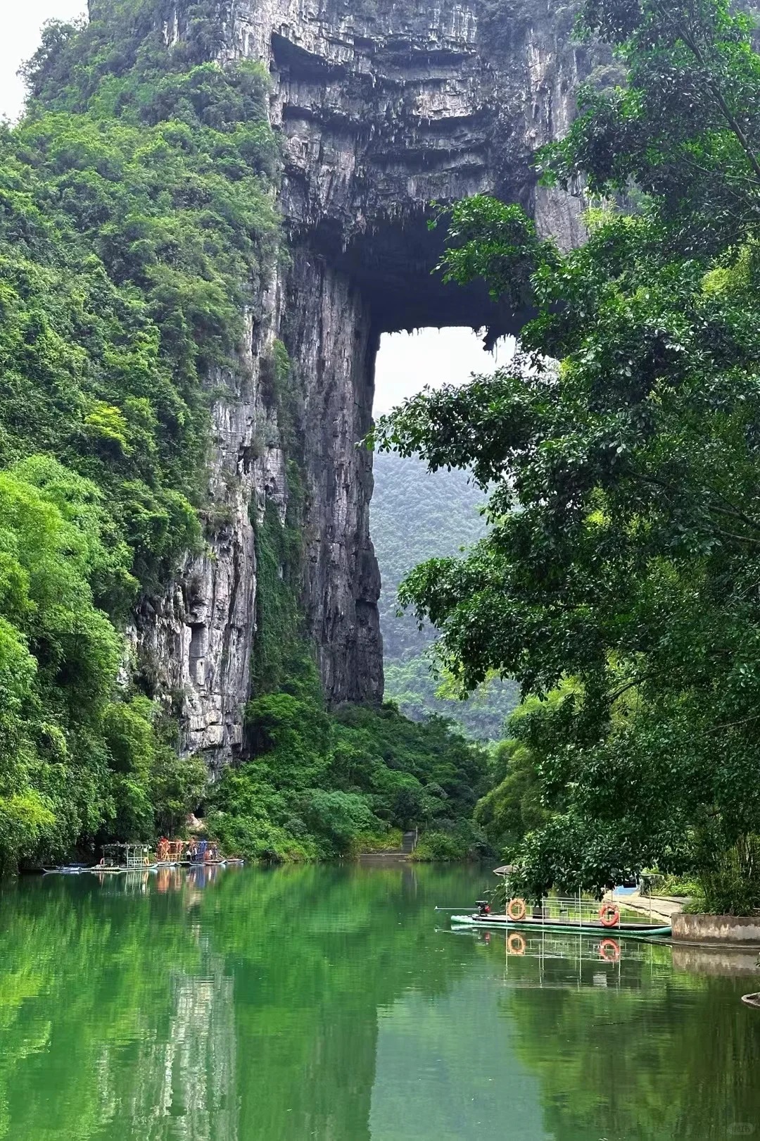 被誉为“中国最美地下峡谷”。公园以一座天然形成的石灰岩拱桥——“香桥”为核心景观,桥高约30米,横跨于清澈的洛清江支流之上,桥下碧水潺潺,四周峰林耸立,绿树掩映,宛如仙境入口。作为国家级地质公园,香桥岩不仅具备极高的科研价值,也为游客提供了沉浸式的自然体验。步道依山傍水,沿途可赏飞瀑、听泉鸣、观奇石,四季皆景。春有山花烂漫,夏可避暑纳凉,秋看层林尽染,冬享静谧清幽。