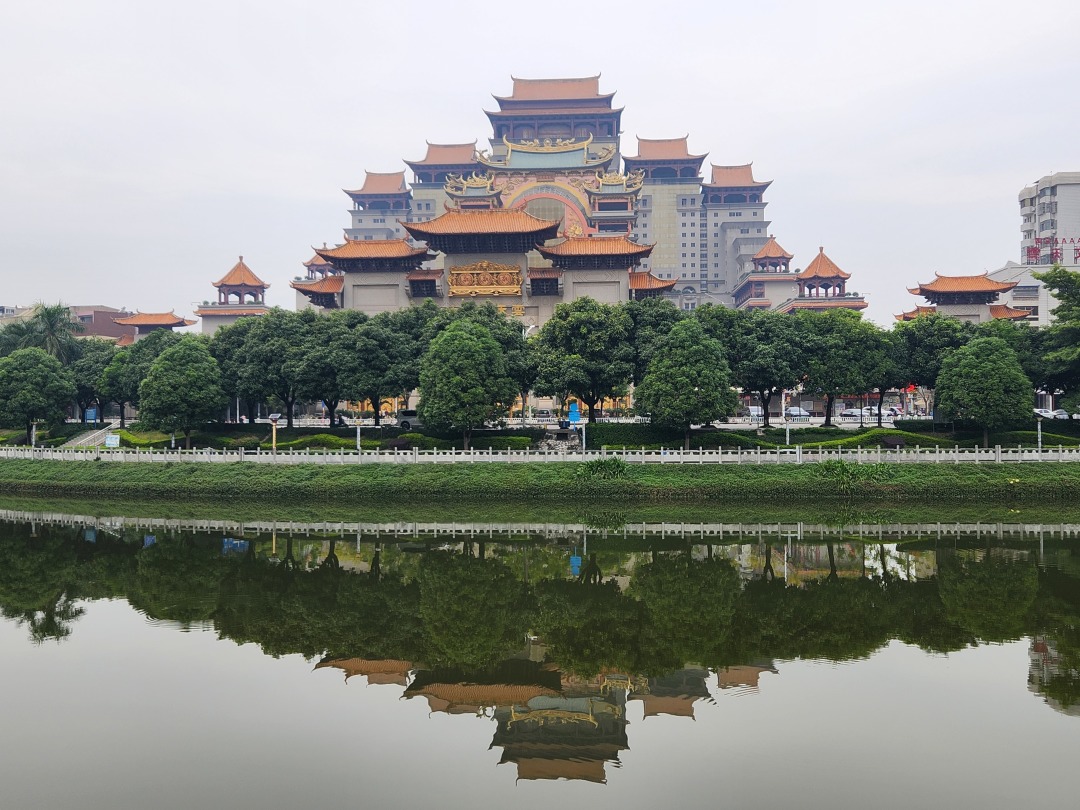 云天文化城是一座气势恢宏的仿古建筑群,被誉为“南方的布达拉宫”。虽非宗教场所,却以弘扬中华传统文化为宗旨,融合儒、释、道及民俗信仰于一体。主殿高108米,共42层,通体采用石雕、木雕、铜铸与琉璃瓦打造,飞檐斗拱、雕梁画栋,细节极致繁复,令人叹为观止。登顶观景台,可俯瞰玉林城区与远山如黛,心旷神怡。园区布局讲究风水格局,五进院落层层递进,寓意“修身齐家治国平天下”。云天文化城不仅是一处建筑奇观,更是一座沉浸式的中华文化体验空间。无论你是追寻传统美学、静心祈福,还是摄影打卡,这里都能带来视觉震撼与精神共鸣。作为玉林最具标志性的文旅地标,它用匠心讲述着中华文明的博大与温情。