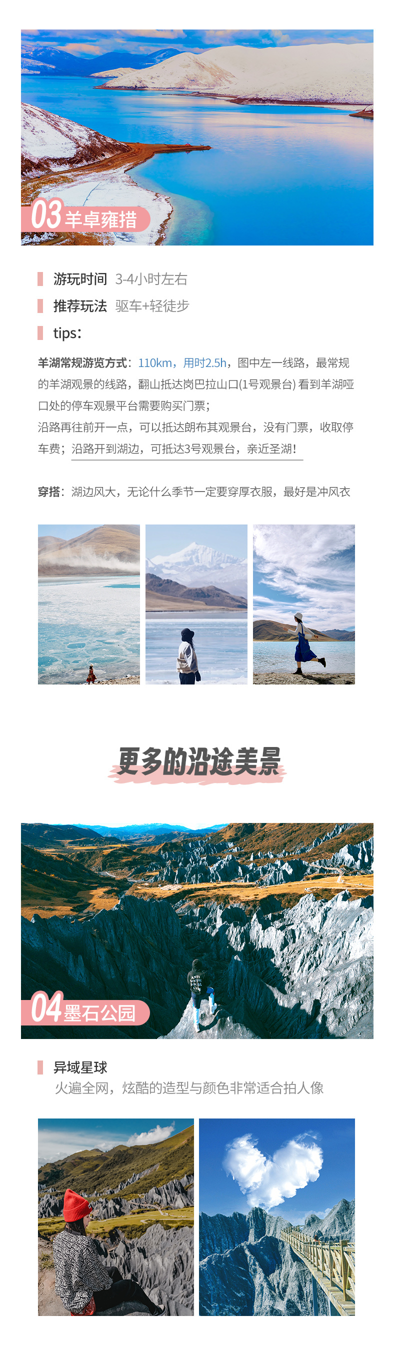 (5)长途:景点分散,距离较长。故乘车时间长易疲劳,带一些零食、饮用水、扑克牌等,途中消遣;
