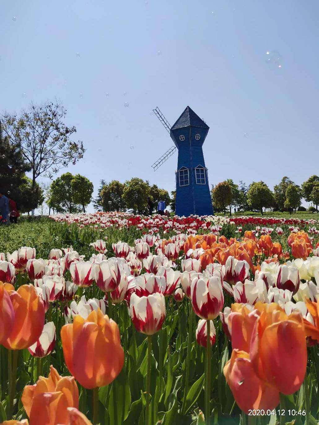 春风拂面,竞相开放的郁金香随风摇曳,我们仿佛置身于花的海洋,如痴如醉。在郁金香的周围,还有那盛开的樱花和杜鹃,加上干净的白河,柳枝拂面,这才是春天该有的画面