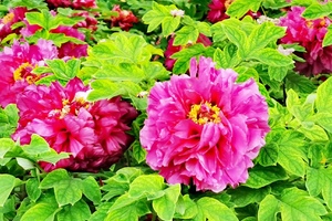 牡丹观赏区内定植牡丹30余万株,汇集国内外牡丹品种400多个,姚黄、魏紫、洛阳红、火炼金丹、飞燕红妆、玉版白、二乔、状元红、豆绿、盛丹炉、蓝田玉、墨撒金、泼墨紫、茄蓝丹砂、夜光白、青龙卧墨池、娇容三变、首案红、赵粉、胡红、大棕紫、王红、丹炉焰、冰凌罩红石、洛神、似荷莲、朱砂垒、赤龙换彩、凌花晓翠、银粉金鳞、御袍黄、葛巾紫、酒醉杨妃、冠世墨玉、珊瑚台、贵妃插翠、宝石兰等传统名品,雍容华贵,尽显芬芳;日该品种海黄、金阁、金帝、新七福神、白王狮子等;法国金色爱丽丝等海外奇葩争奇斗艳,各展英姿。