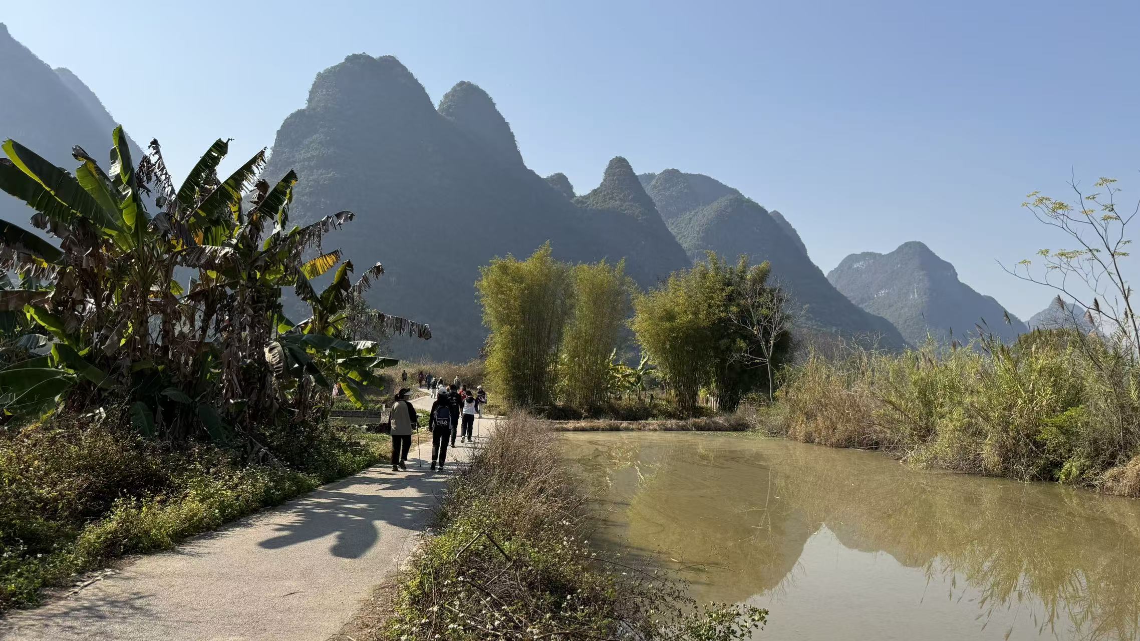 漓江徒步近年来非常流行,几乎达到了火爆的程度,这主要因为漓江徒步没有那么累,不至于大汗淋漓,可以自由选择徒步里程,不想走了就返回,还能乘坐当地小面包车返回,路途非常有趣,古村落很多,几乎都保持着原生态,一路上风景是常规旅行团不能比拟的,时而江边行走,时而绕到村子里,时而过河,时而穿越丛林,原始而充满体验感。