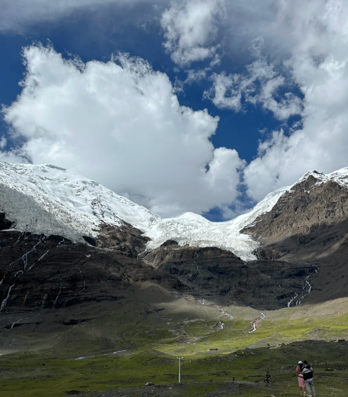 触摸卡若拉冰川的亿年冰封,是此行最难忘的体验。免门票近距离靠近冰川,蓝白色的冰体在阳光下晶莹剔透,寒气中带着纯净的气息。冰川融水潺潺流淌,诉说着岁月的故事,抬头是苍茫雪山,低头是冰封奇迹,这份壮阔与静谧,让人久久沉醉。