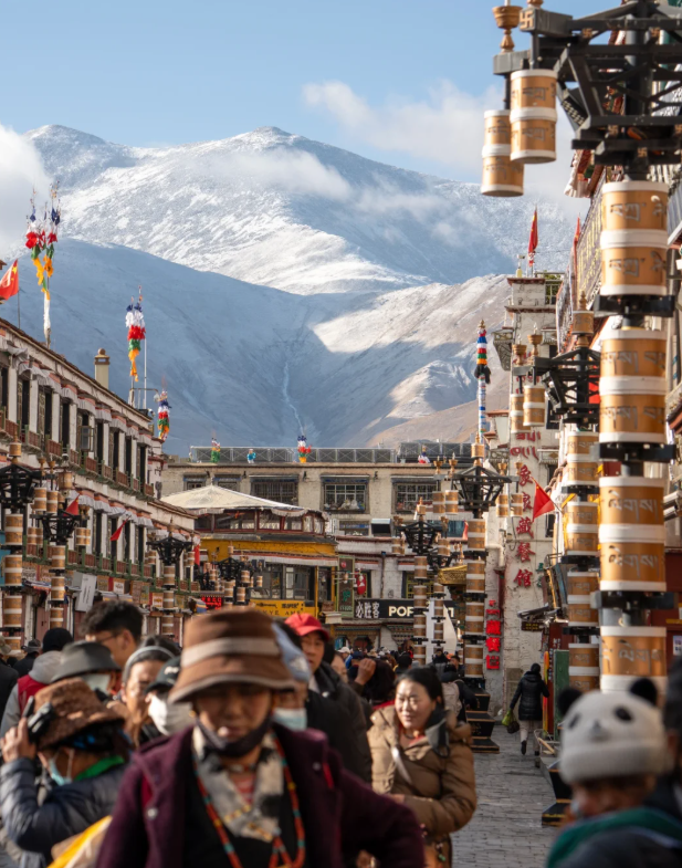 如今的拉萨兼具神圣与活力,八廓街的唐卡店与网红咖啡馆相邻,甜茶馆里的笑声混着酥油香气,布宫广场上的五星红旗与经幡一同飘扬。冬日晴空湛蓝如洗,夏季草木葱茏,这里既是信仰的归宿,也是旅人心中的精神原乡。
