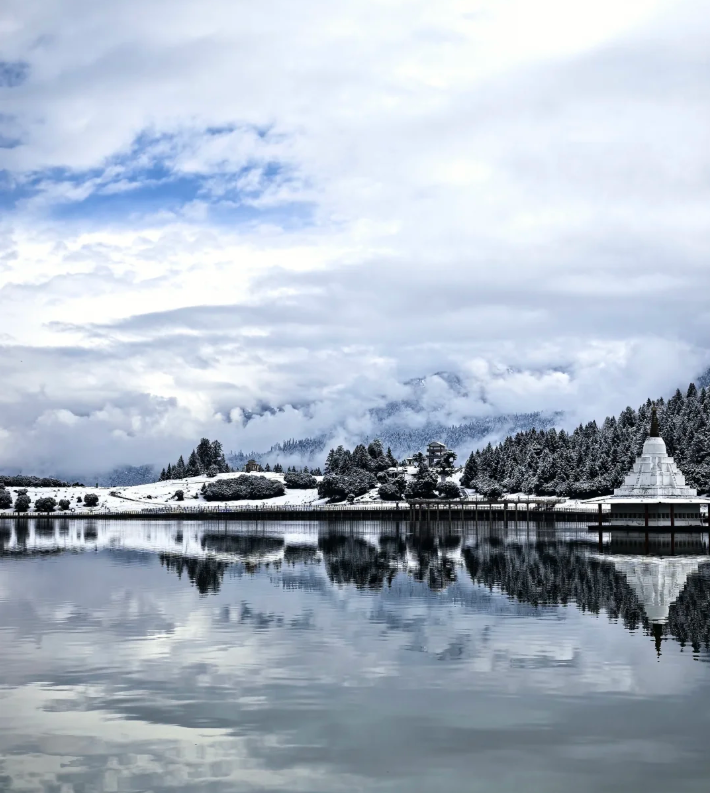 在巴松措遇见冬日静美。踏入这片 “高原明珠”,湖面虽有薄冰,却更显幽蓝深邃。岸边的村庄飘着炊烟,藏式房屋错落有致,雪山与森林环绕四周,走在栈道上,听鸟鸣与风声,仿佛闯进了与世隔绝的世外桃源,连呼吸都变得清甜。