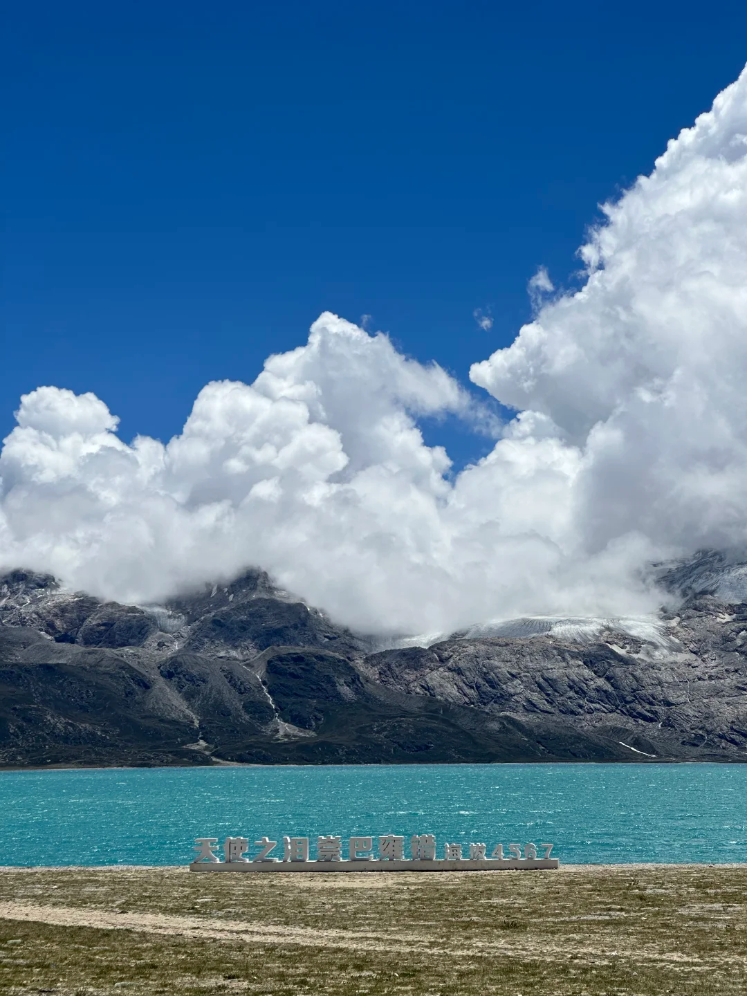 【崇巴雍措】它被当地人称为“天使的眼泪”,湖泊周围被加桑康拉雪山等海拔6000米以上的山峰环抱,南岸终年积雪的山峰倒映湖中形成独特景观。