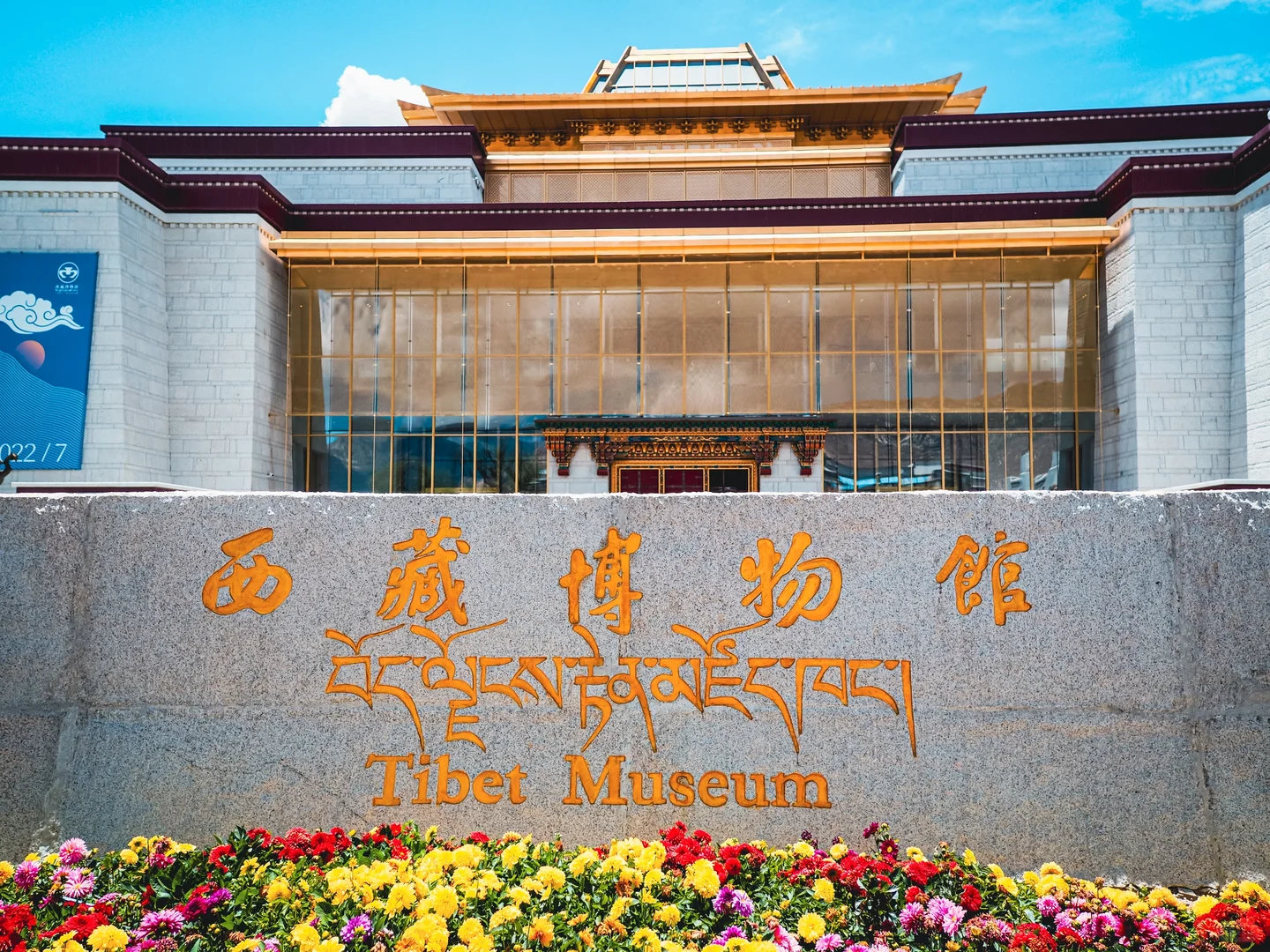 西藏博物馆是西藏自治区唯一一座国家一级博物馆,也是最大的现代化综合性博物馆。建筑外观为传统藏式建筑,采用藏式元素 300 余种,藏式造型 145 个,藏式纹样 200 余种。金顶大厅高达 36 米,是西藏地区最大跨度的玻璃透明金顶。