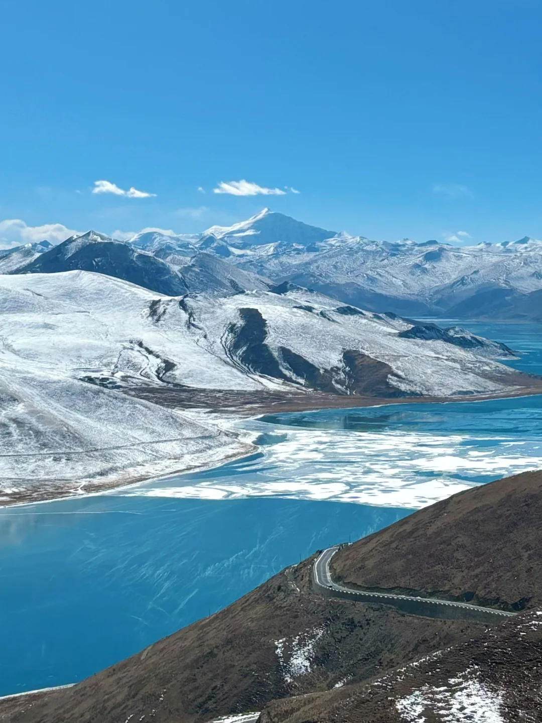 【羊卓雍措】面积600多平方公里,湖面海拔4000多米,是西藏三大圣湖之一。